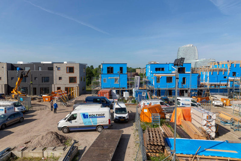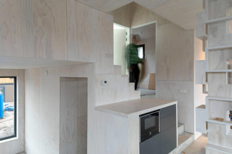 Het Cubestee buurtje staat hier in ieder geval de komende tien jaar. Daarna zou hij ergens anders kunnen worden neergezet. Dat kan, omdat de Cubestee’s al helemaal ‘af’ uit de timmerfabriek van Houkesloot komen, compleet met elektrische bedrading, installaties (gasloos), badkamer en keuken. In één dag tijd worden ze op locatie afgemonteerd.