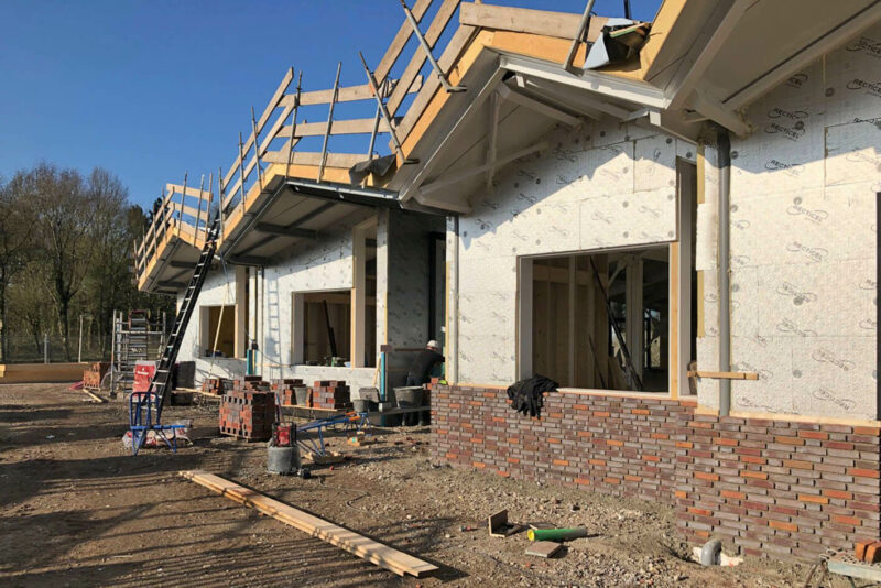 Op locatie Het Bouwhuis van De Twentse Zorgcentra verbouwen we momenteel het activiteitengebouw. De derde en laatste fase is van start gegaan. Aan de buitenzijde zijn de eerste fasen nog niet helemaal gereed. Het wachten is op de sloop van een tegenoverliggend gebouw. Dan kan het terrein op de schop. De klokkentoren zal nog wat worden verplaatst.