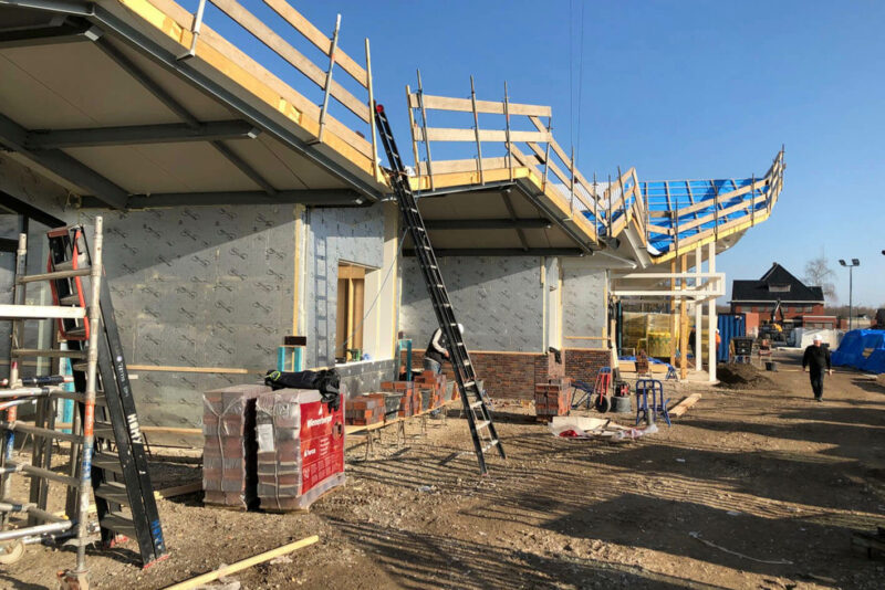 Op Texel vordert de bouw van natuurcentrum De Marel gestaag.