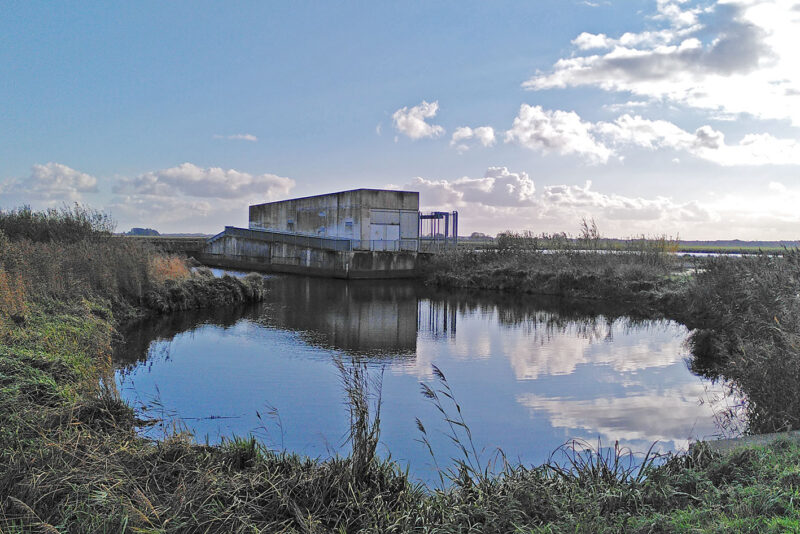 Ik kan nooit nalaten een foto te maken wanneer ik met de fiets voorbij kom. Het mooist is het wanneer een blauwe lucht met losse wolken te combineren is met het gebouw.