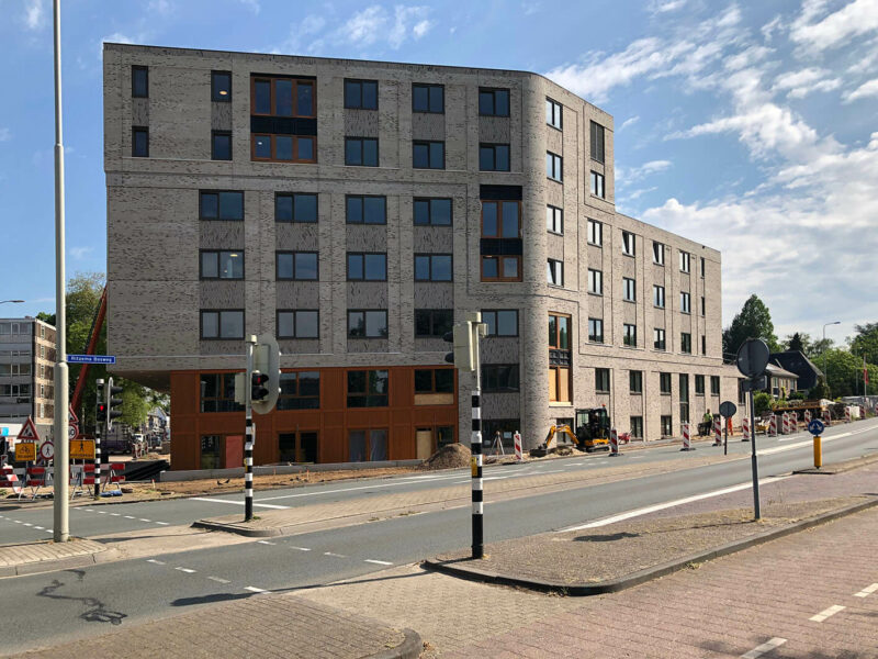Na de bouwvak is Van Wijnen Arnhem gestart met de bouw van het casco van het zeven lagen tellende gebouw. Per week wordt een verdieping opgeleverd. Het gebouw biedt plaats aan 127 studenteneenheden voor Idealis in de binnenstad van Wageningen. Wij hebben het ontwerp hiervoor mogen maken in opdracht van Van Wijnen Oost Projectontwikkeling.